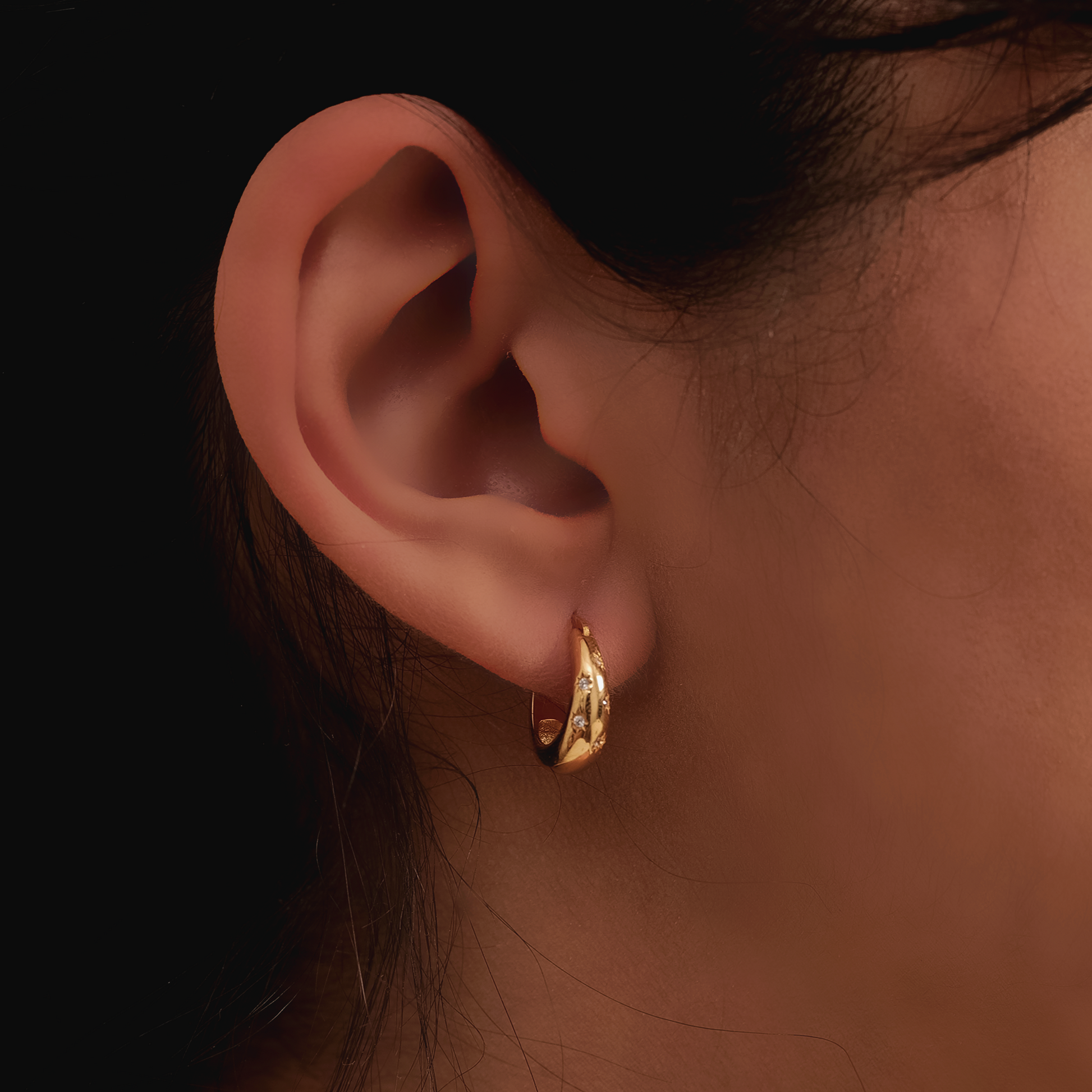 Les Boucles Aria allient chic minimaliste et sophistication. Leur design à enfiler, orné de zircons délicatement incrustés, sublime l’oreille tout en discrétion. Un bijou intemporel à avoir dans toutes les collections.